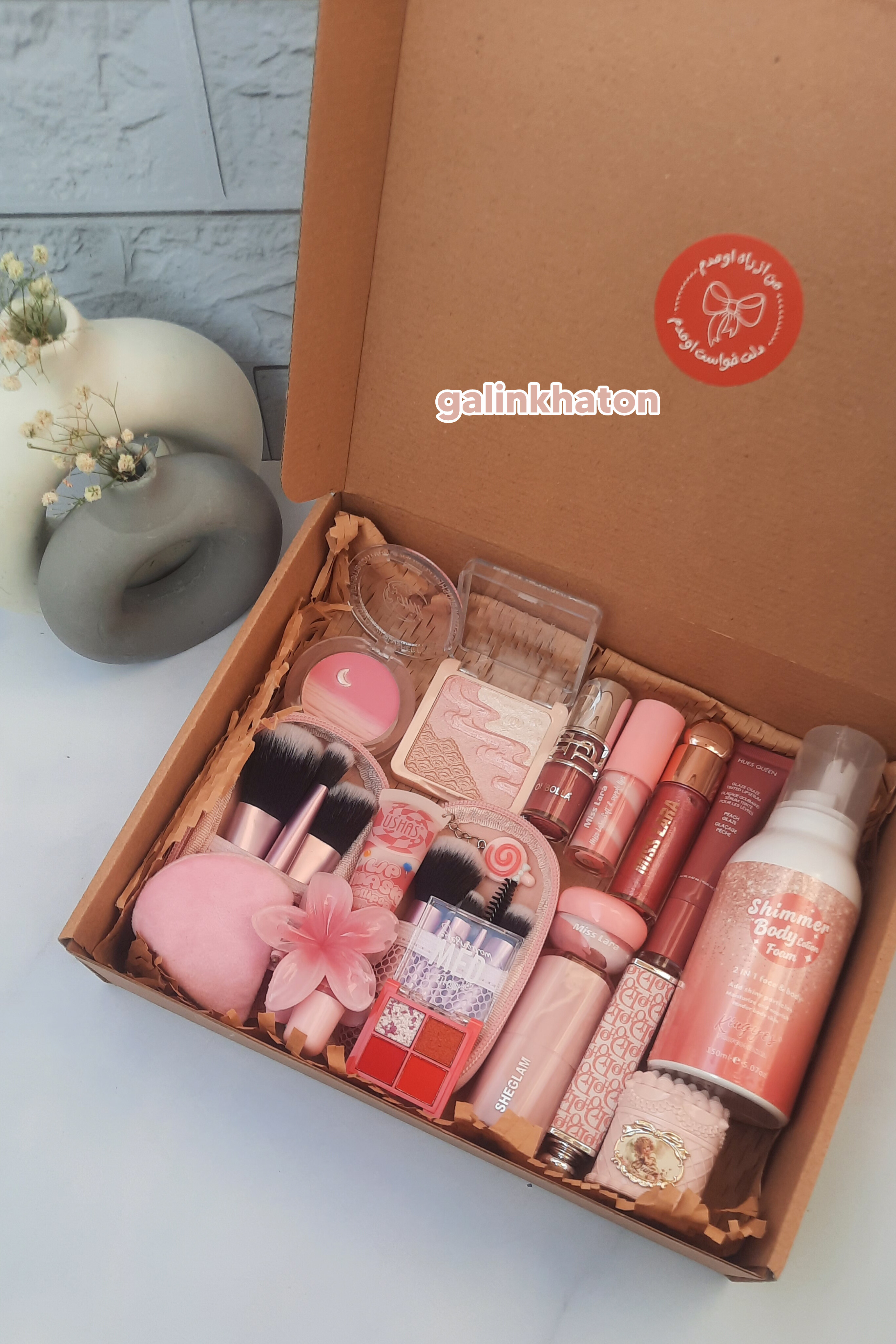باکس هدیه آرایشی دخترانه صورتی | پک کامل میکاپ و اکسسوری
