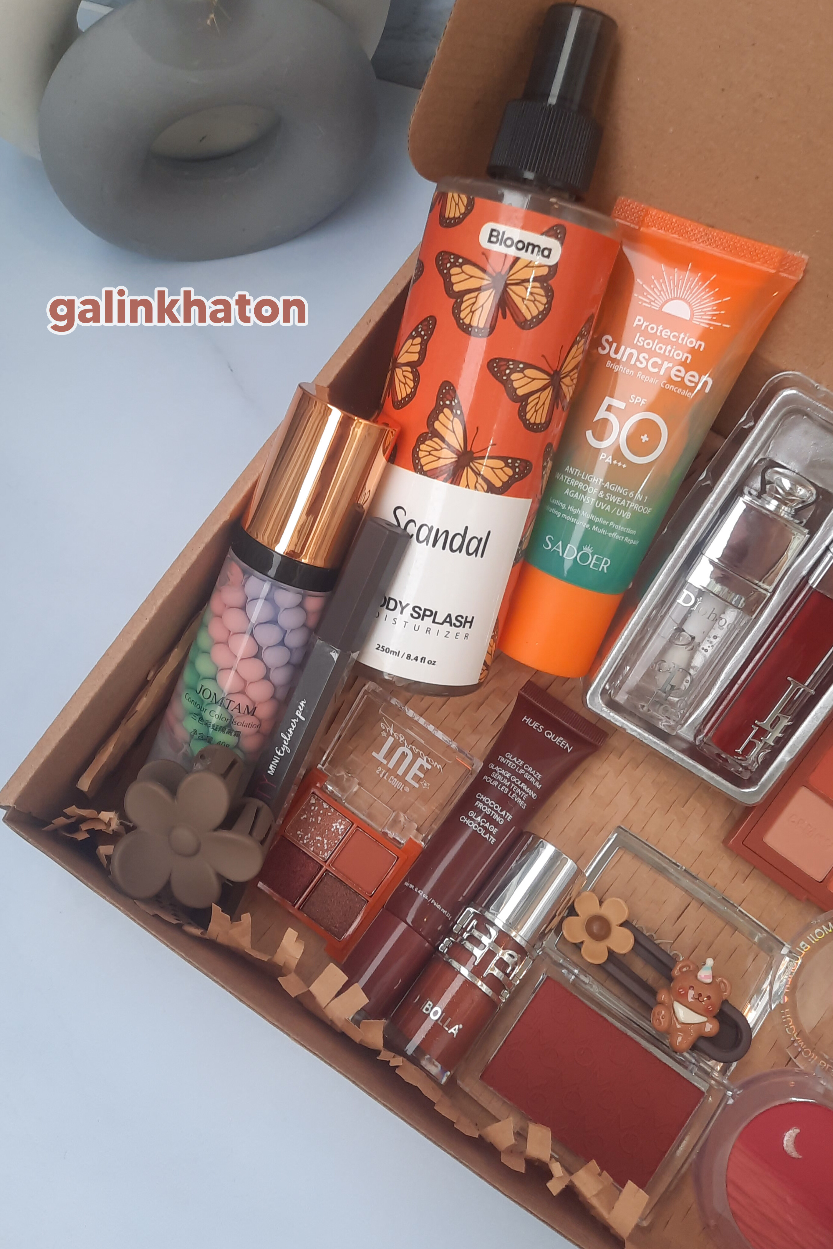 اقلام اصلی: بادی اسپلش، پالت سایه، لیپ گلاس، رژگونه، ضدآفتاب