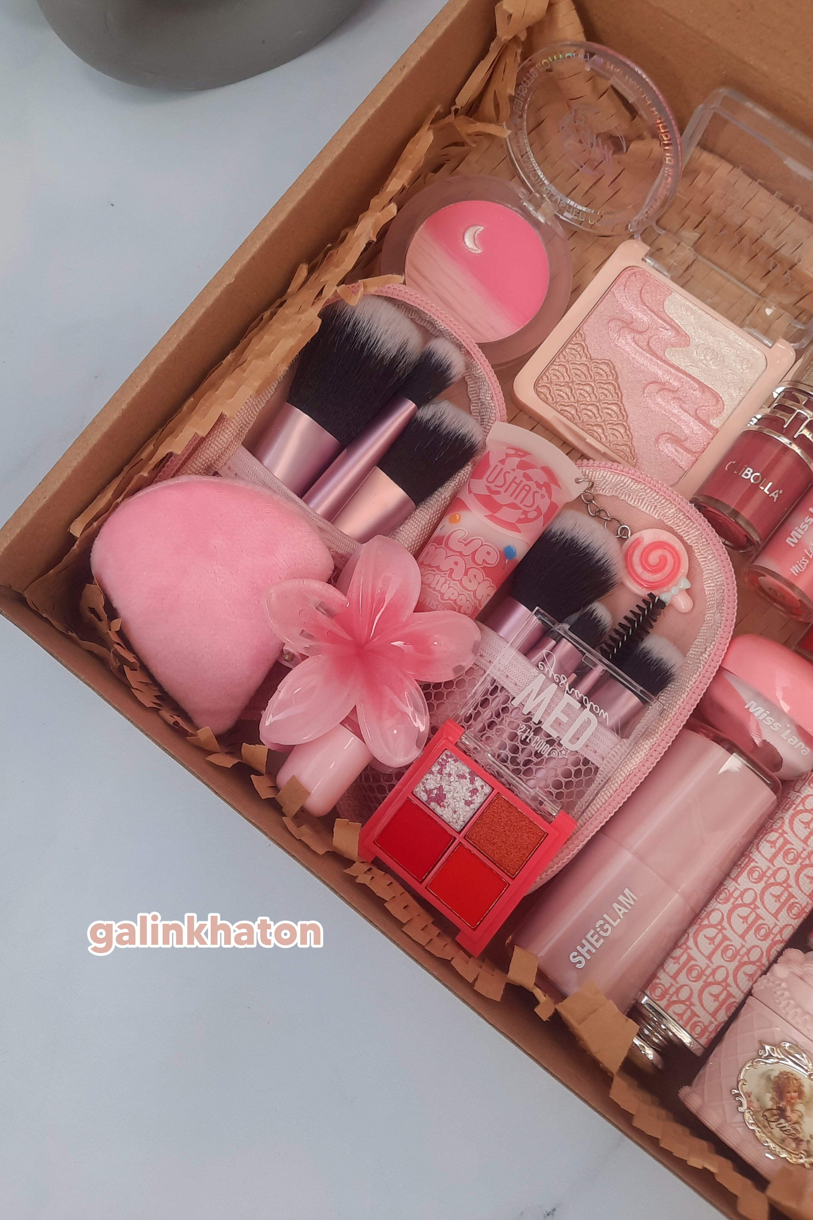 باکس هدیه آرایشی دخترانه صورتی شامل پک کامل میکاپ و اکسسوری، مناسب هدیه دادن و استفاده روزانه با سبک ملایم و ترند برای سلیقههای مختلف بانوان جوان.