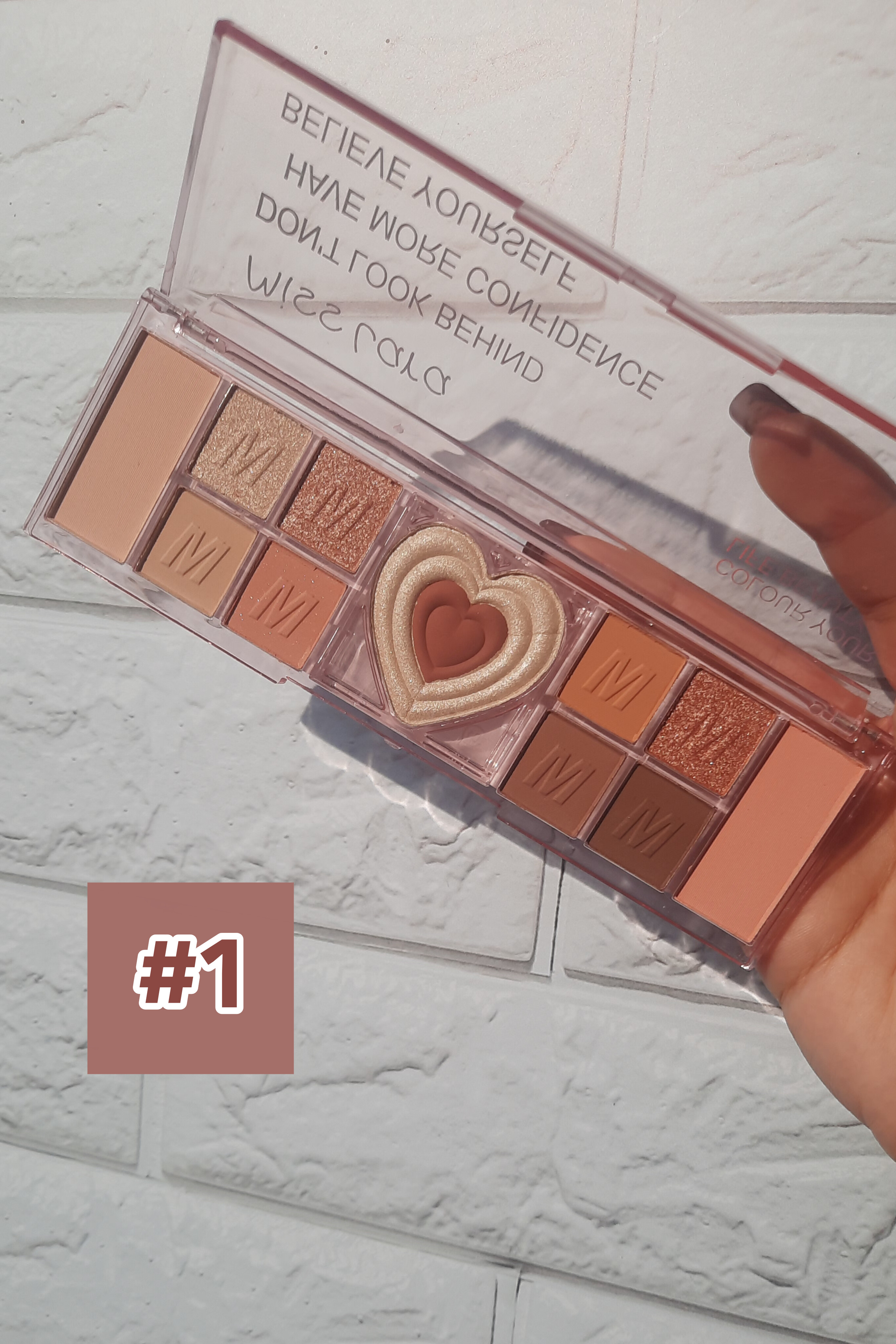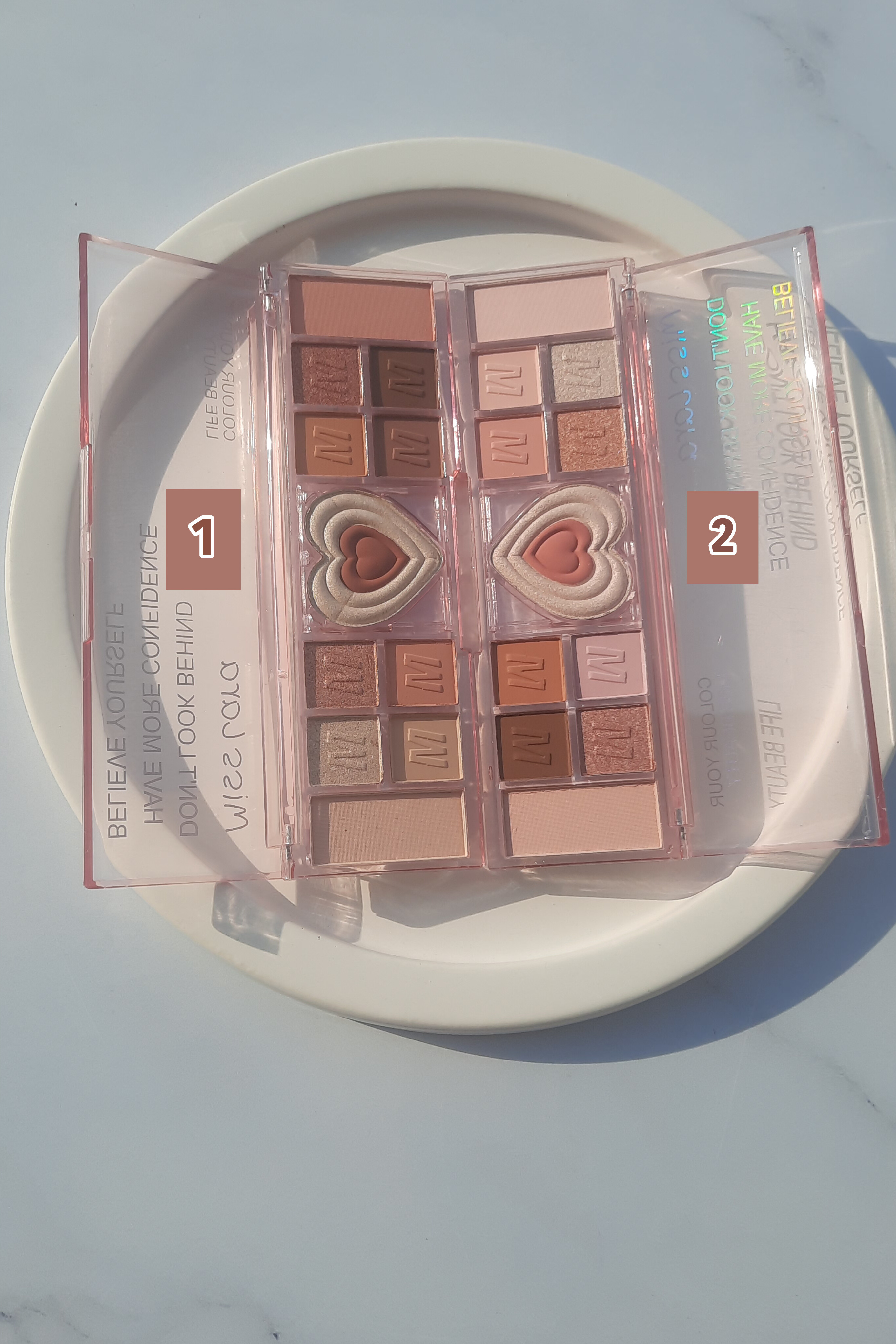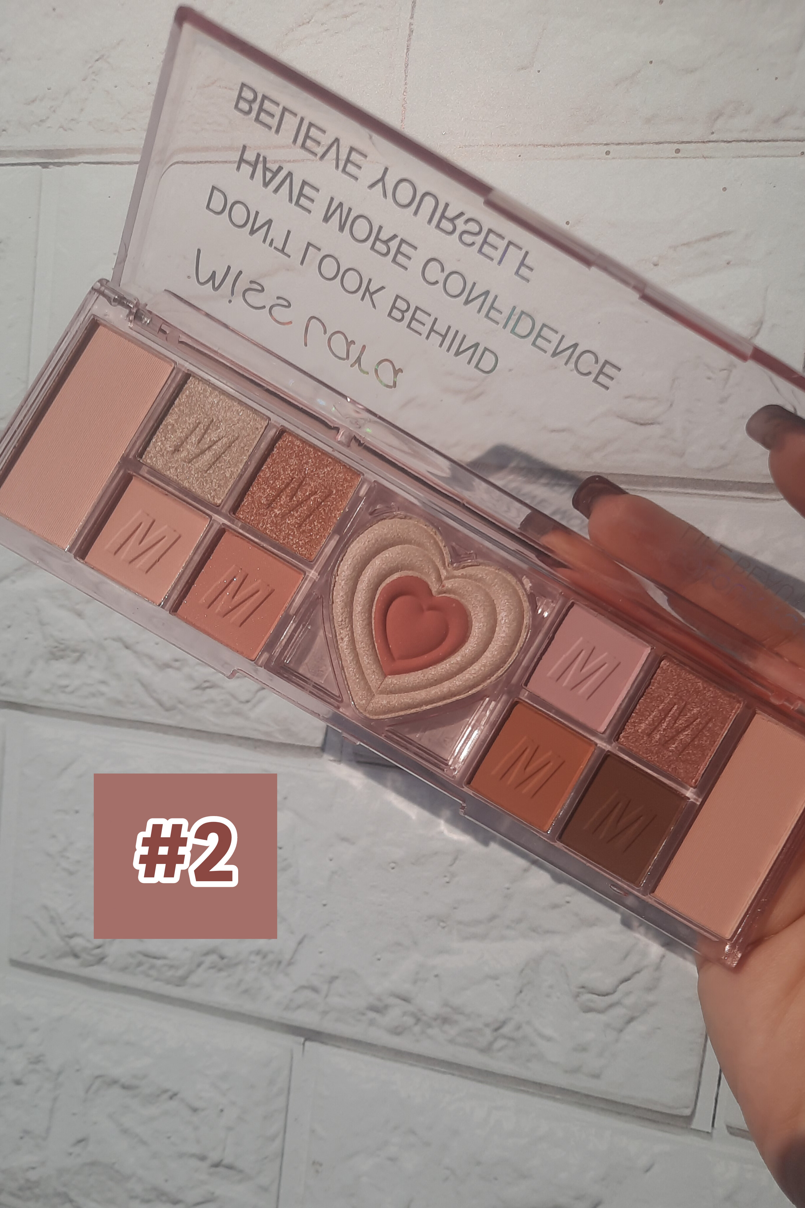 پالت سایه قلبی Miss Lara با دو رنگبندی جذاب، پیگمنت بالا و ماندگاری طولانی، مناسب آرایش روزانه و مجلسی با ترکیب آسان رنگها